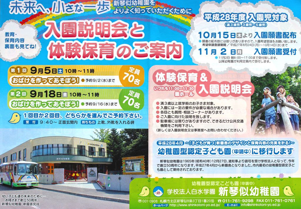 平成27年度より子ども子育て支援新制度がスタートしております。本園は平成28年4月より新制度移行する予定で準備を進めております、 今後の園の運営に伴う移行予定について入園説明会で詳しく説明いたします。