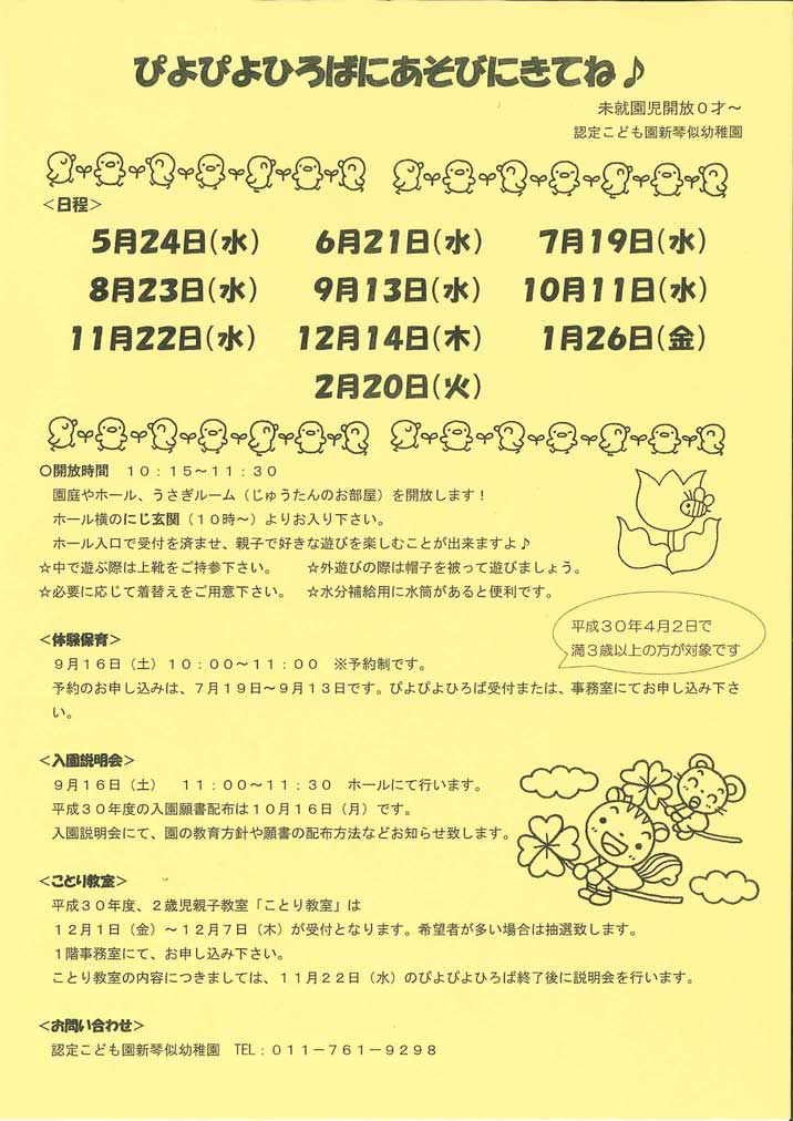 平成29年度 ぴよぴよ広場(未就園児 1・2歳児対象)子ども園園開放事業 †