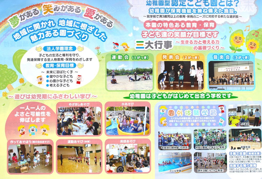 現在H28年度に「幼稚園型認定こども園」へ移行すべく準備をすすめているところです。ご質問などがある方は、園事務室までお願い致します。TEL(011)761-9298