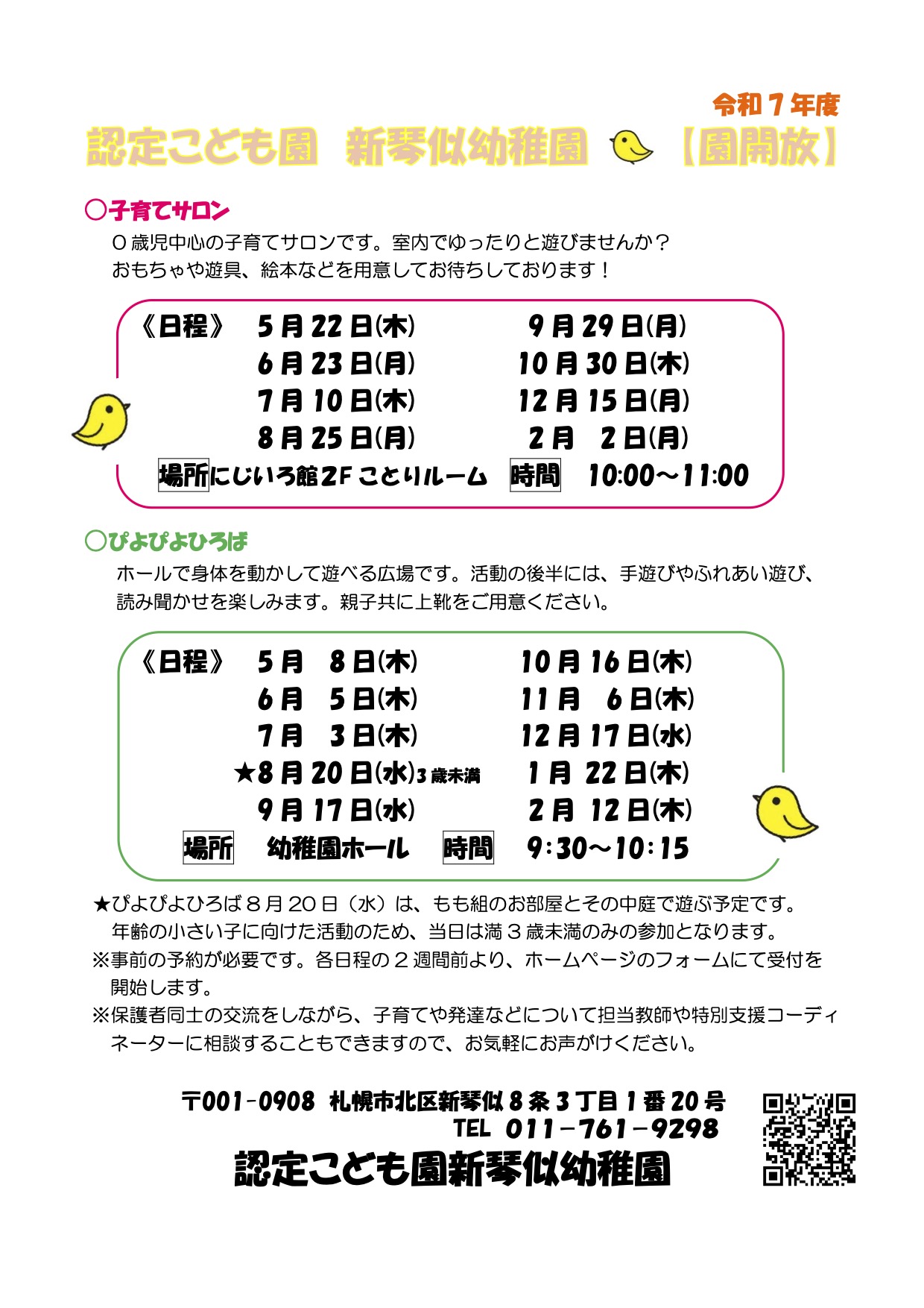 当日受付はお電話でお願いします。ぜひお友達を誘って遊びにいらしてください。